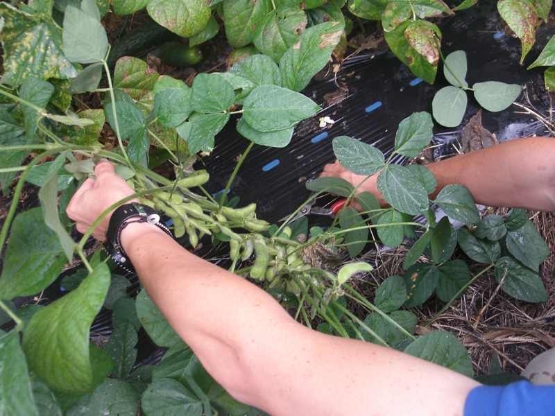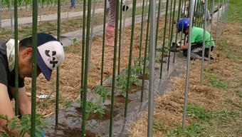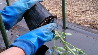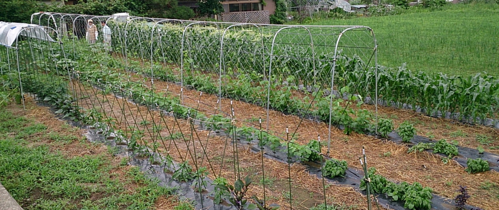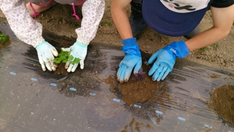 この日はトマト、なす、オクラ、バジル、白花豆、キュウリ等様々な野菜を作付けしました。