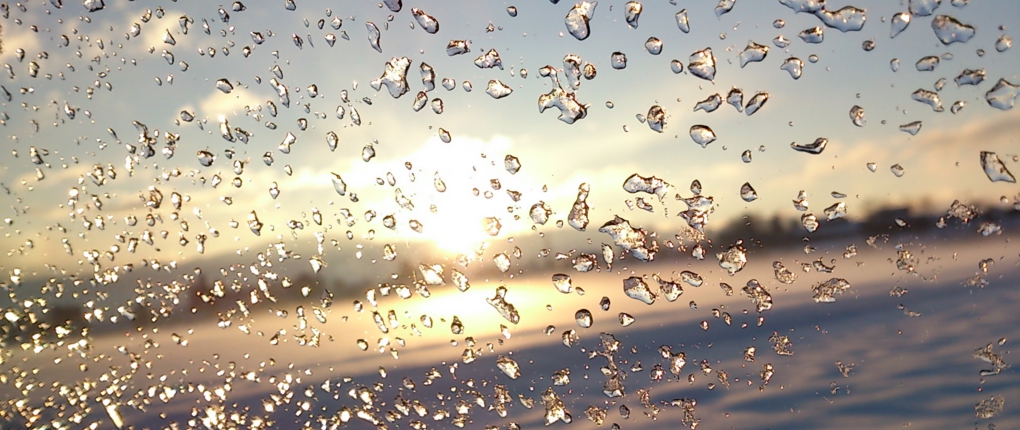 トマトの雨よけに大量の水がたまって、排水作業を実施。方法は剪定ばさみでプッシュっ!