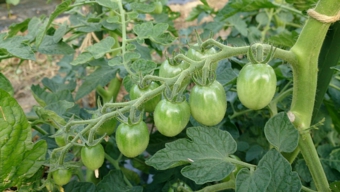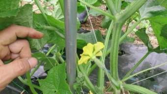 畑全体の成長をハカセのガイドで見て回りました。そのあとトマト、ナス、キュウリ、万願寺唐辛子の誘引を行いました。梅雨明したというのに、途中ひどい雨に見舞われて一時避難。なみさんより今年初物の露地スイカを差し入れていただきみんなで食べました。最後には、バジル、イタリアンパセリ、しそ、万願寺唐辛子の葉を収穫。各自持ち帰りました。