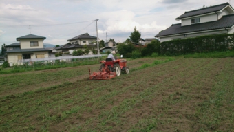 今日は除草も重要なミッション。野菜畑の空き地は、くらっち自慢のトラクターで除草していただきました。