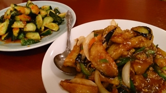 この日採った、キュウリとナスはいつも慰労会をする中華料理フーシンゲンで料理していただきました。