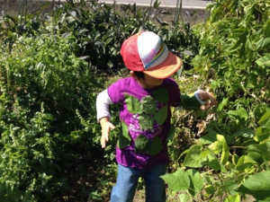 今日のみんなの野菜畑は、これまで収穫してきたインゲン、ゴーヤを撤去しました。