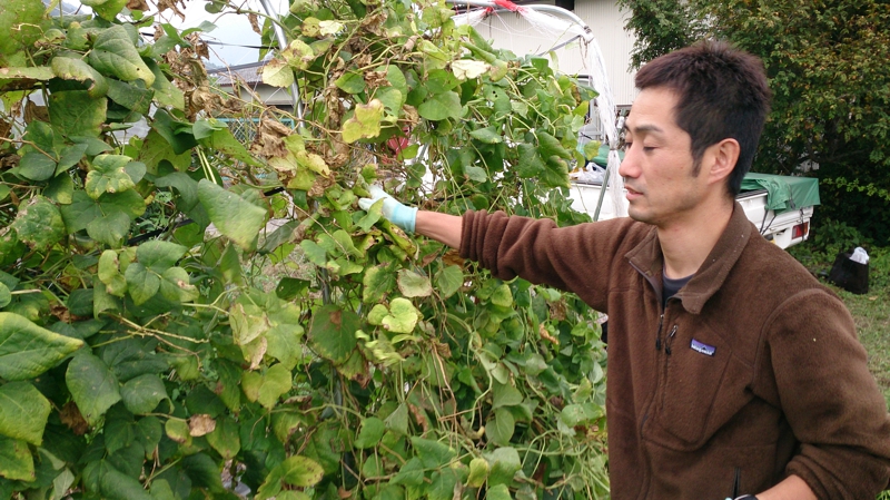あいにく朝から雨。あきらめかけていたら、収穫の時間帯だけ雨がやみました。ラッキー!