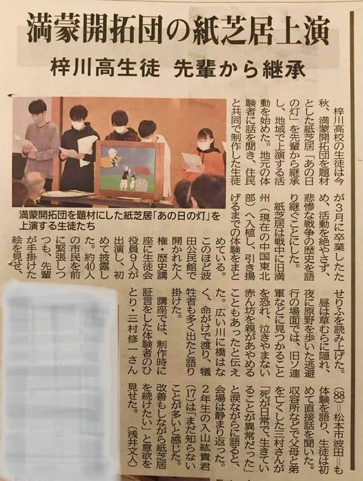 満蒙開拓団の紙芝居(市民タイムス掲載)