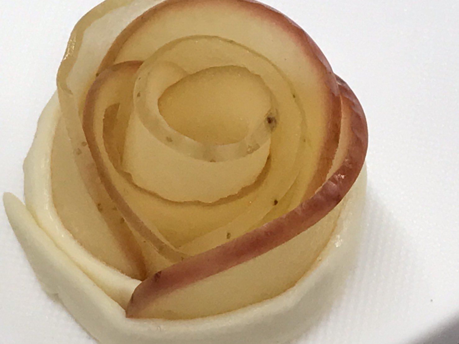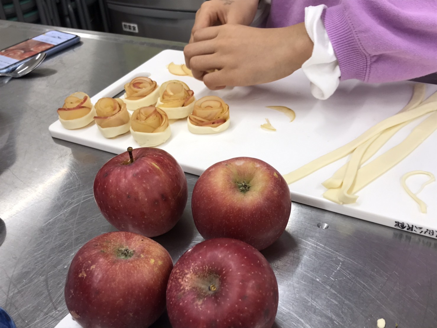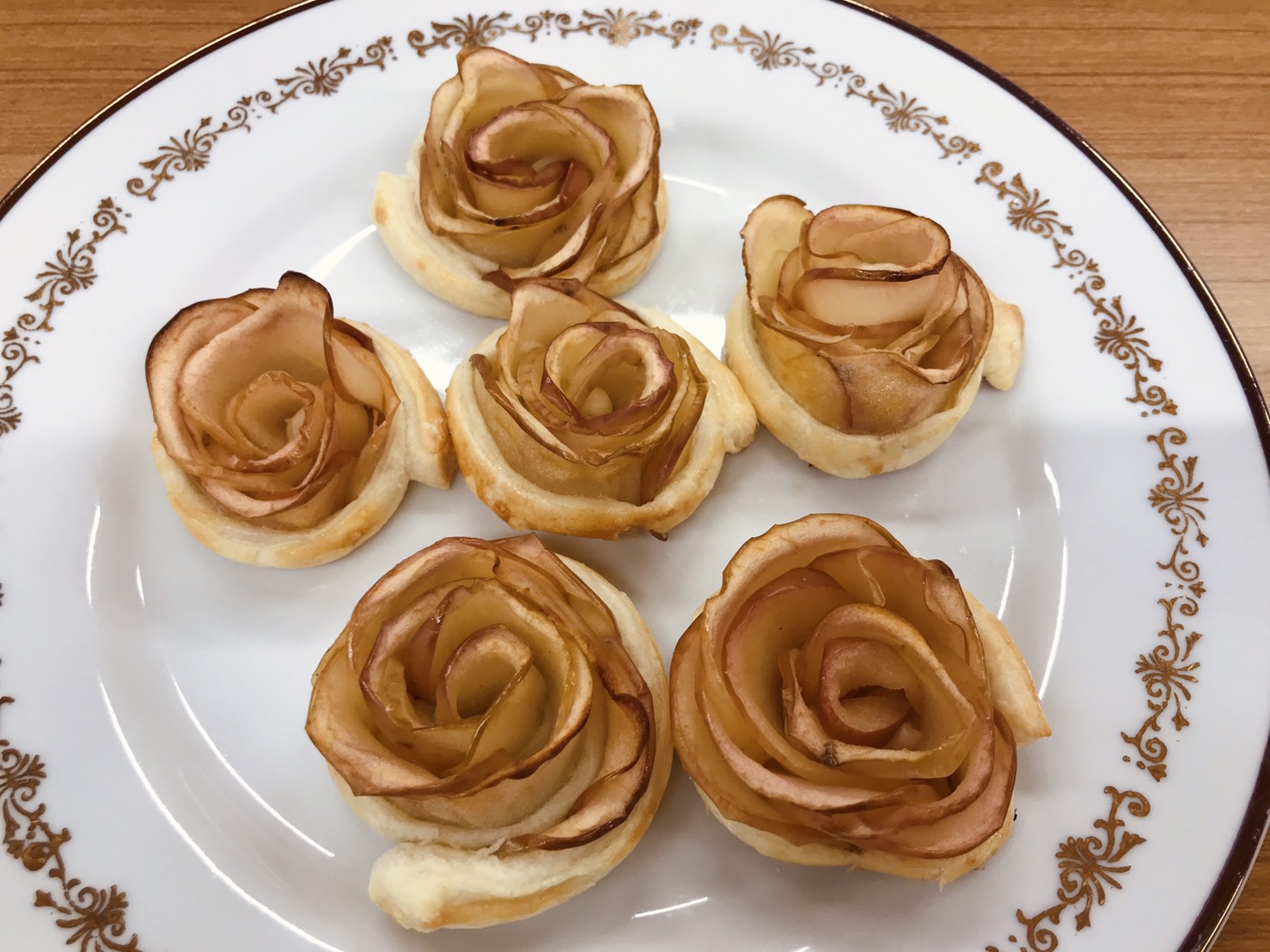 バラのアップルパイは、1皿目は少し焦げてしまったけれど、2皿目はとてもきれいにできました。