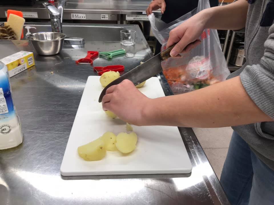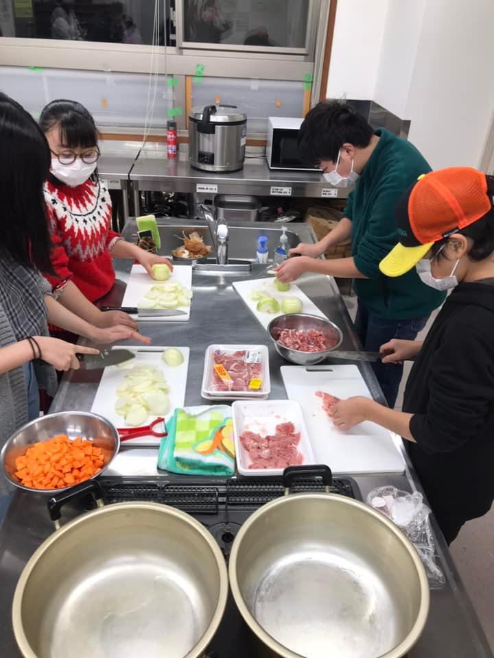 料理は、小さい子も学生もスタッフも、全員が参加して作ります。