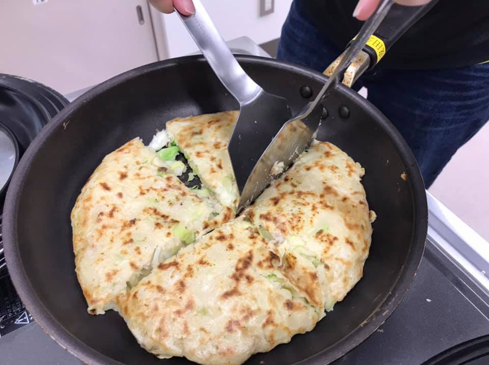 先月はお好み焼きの「焼き」に時間がかかり過ぎてしまったので、その教訓を生かして、今回はフライパンを倍増させ、時間短縮に成功✌️