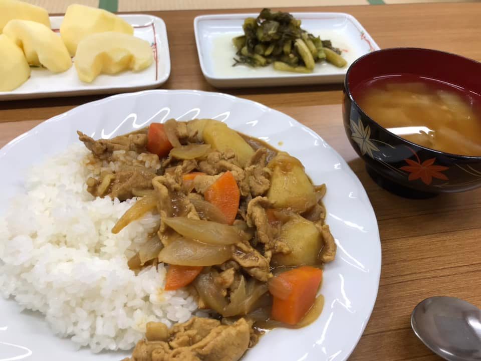 メニューは、カレーとお味噌汁、デザート。